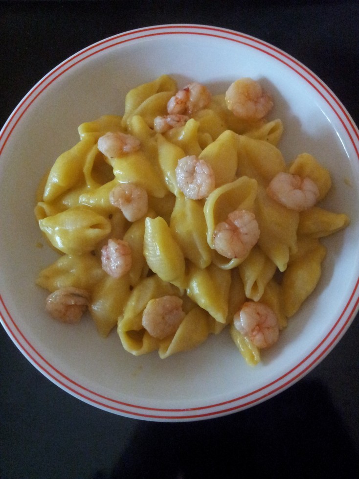 Conchiglioni gamberi e crema di zucca