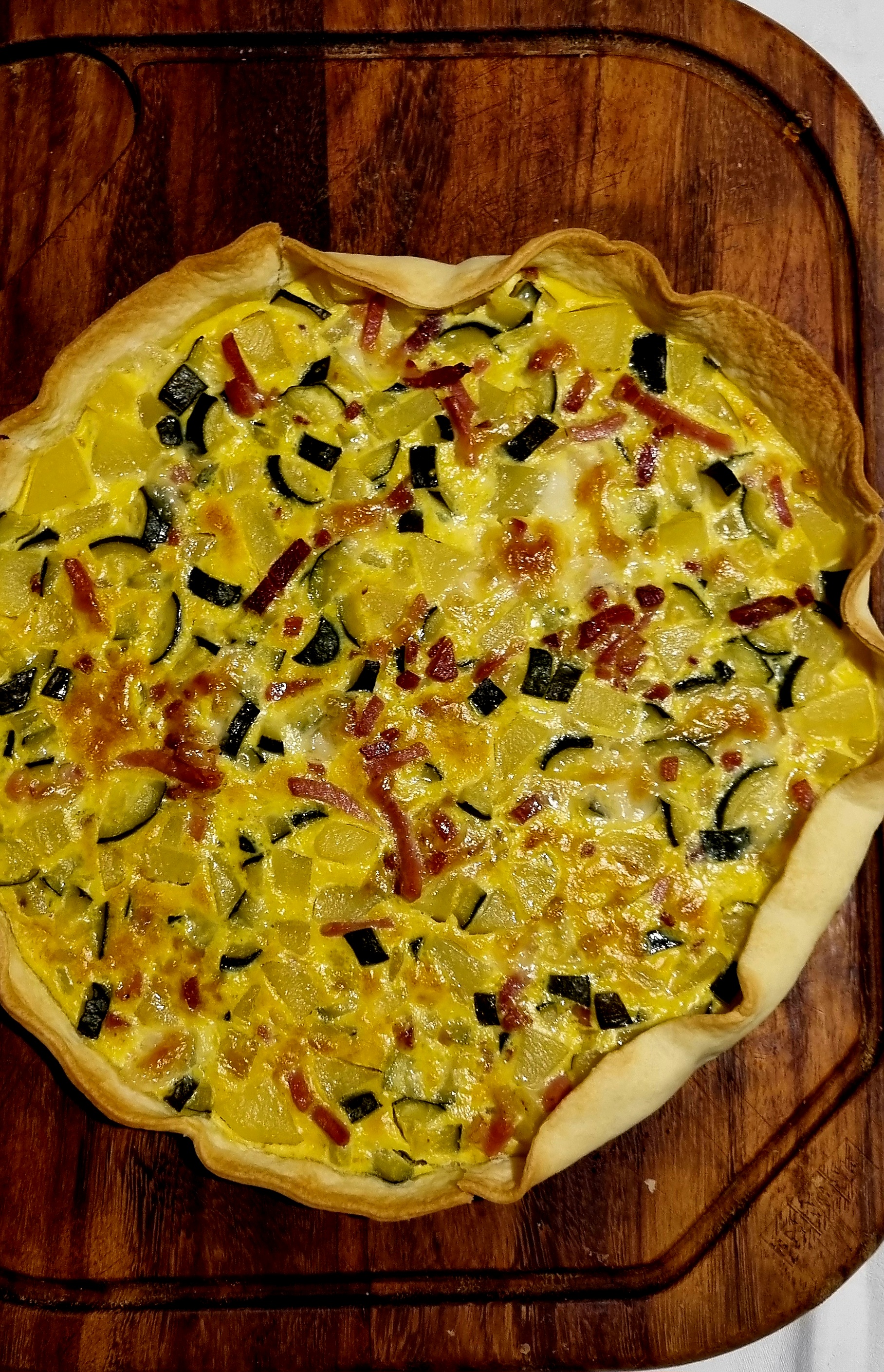 Assomiglia un po' a una quiche lorraine molto farcita e senza panna... buona e nutriente!!