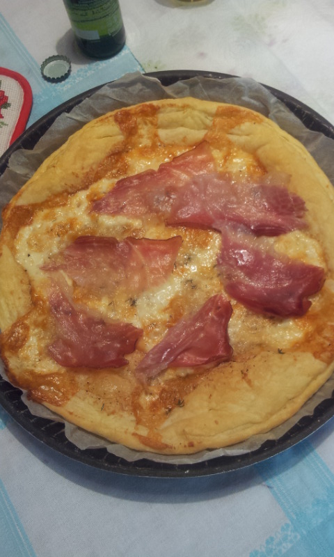 La presenza del peperone con le spezie dà un buon grado di piccantezza, che contrasta con il prosciutto ed il formaggio che sono più dolci....devo averle più spesso queste idee!!