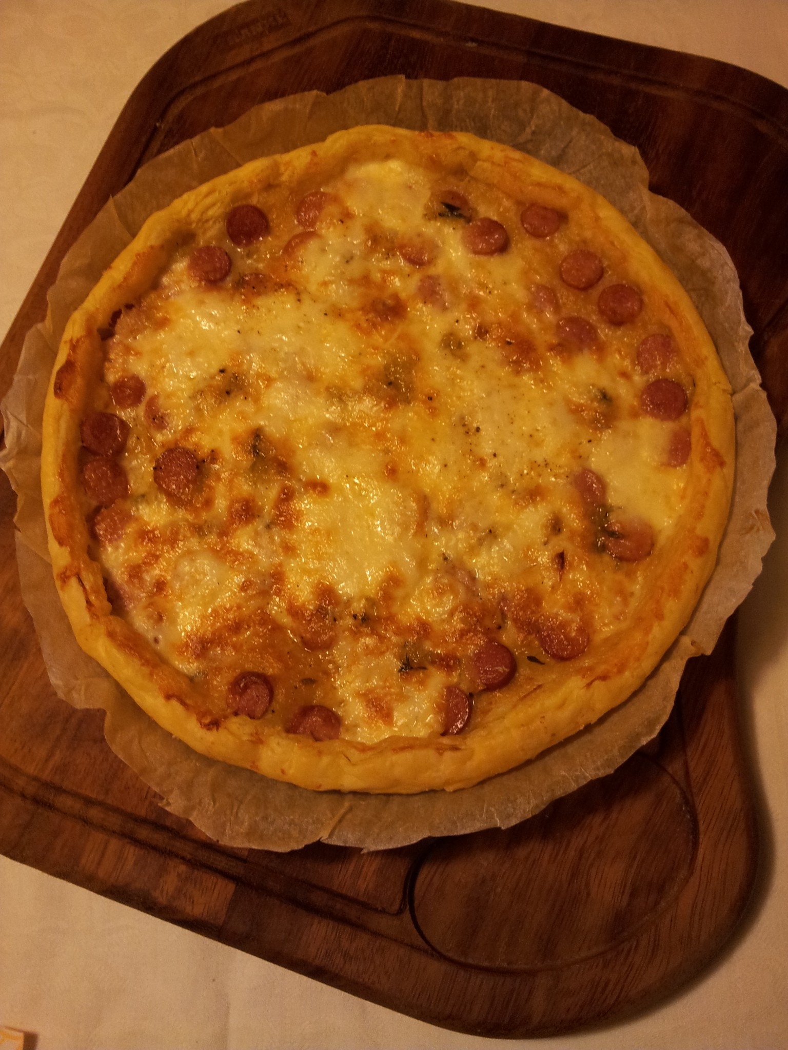 La ricetta originale prevedeva moooolta cipolla.... io però, considerata anche la presenza dei wurstel che appesantisce la digestione della torta, ho preferito ridurre un pochino la dose... mezza cipolla grossa direi che basta.