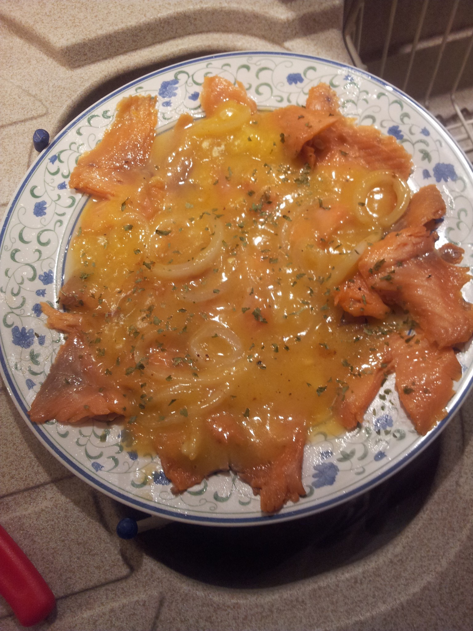 Una mattina, svegliandomi, ho trovato appesa al cancello una busta con dentro 300g di trota salmonata affumicata. No, non era Babbo Natale in ritardo, solo nostro cugino che ci aveva lasciato un dono da una gita al Lago di Garda. Appena l'ho vista, ho subito pensato alle piante di agrumi che stanno riposando in garage in attesa dell'estate.