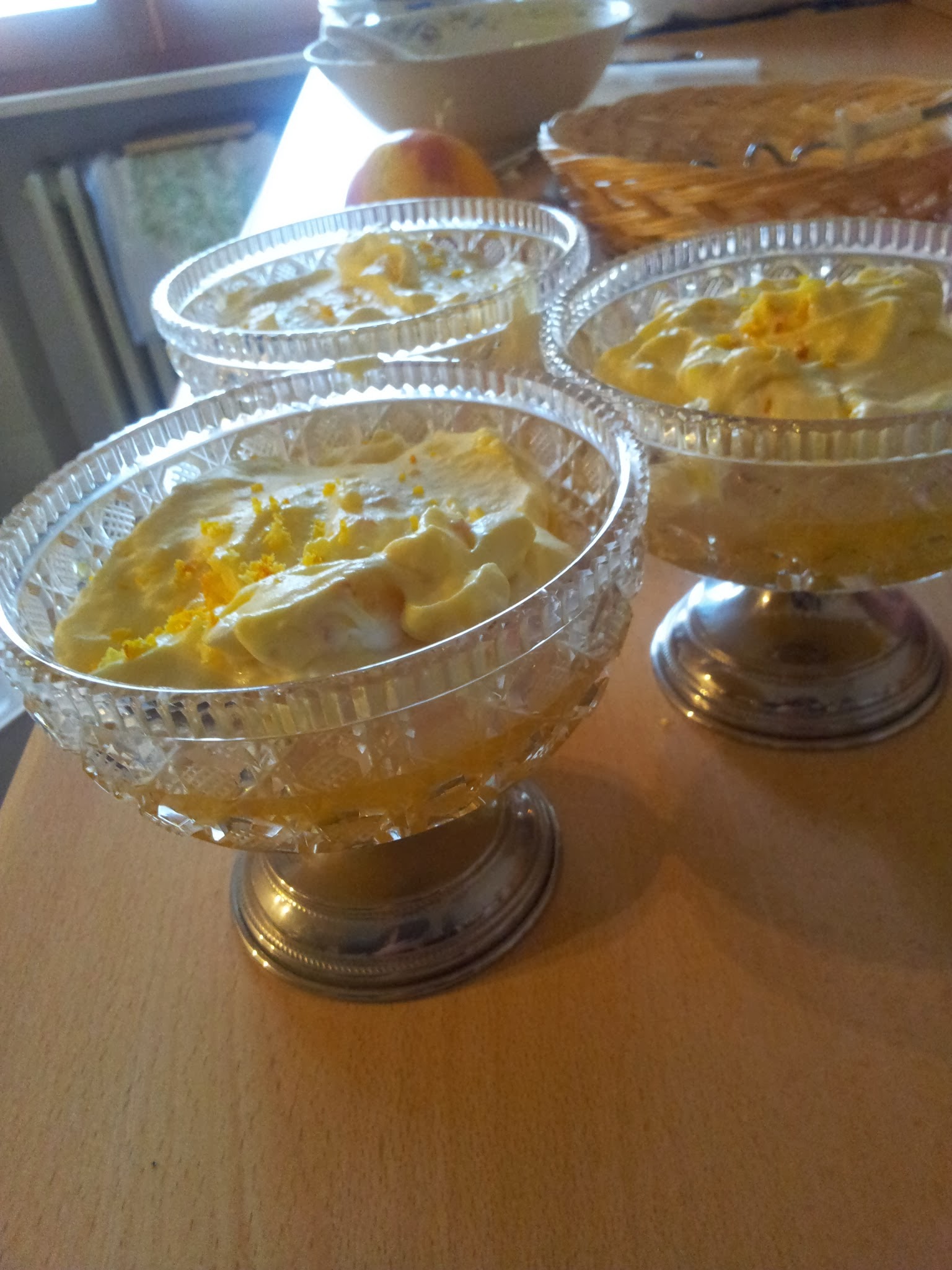 Mescola 4 cucchiai di marmellata di arance con 1 cucchiaio di liquore all'arancia (o cointreau) e distribuisci nelle coppette.