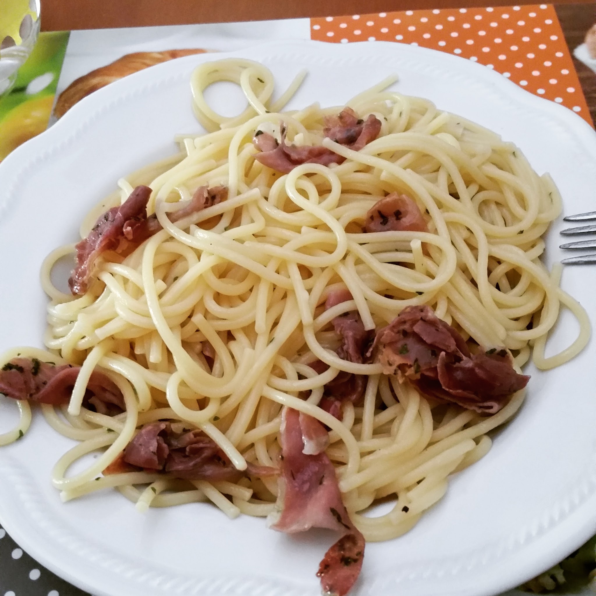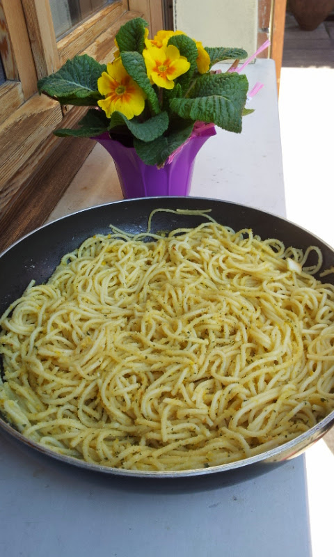 È una versione "più ricca" del classico aglio-olio-peperoncino e molto più morbida...ma anche saporita e altrettanto veloce!