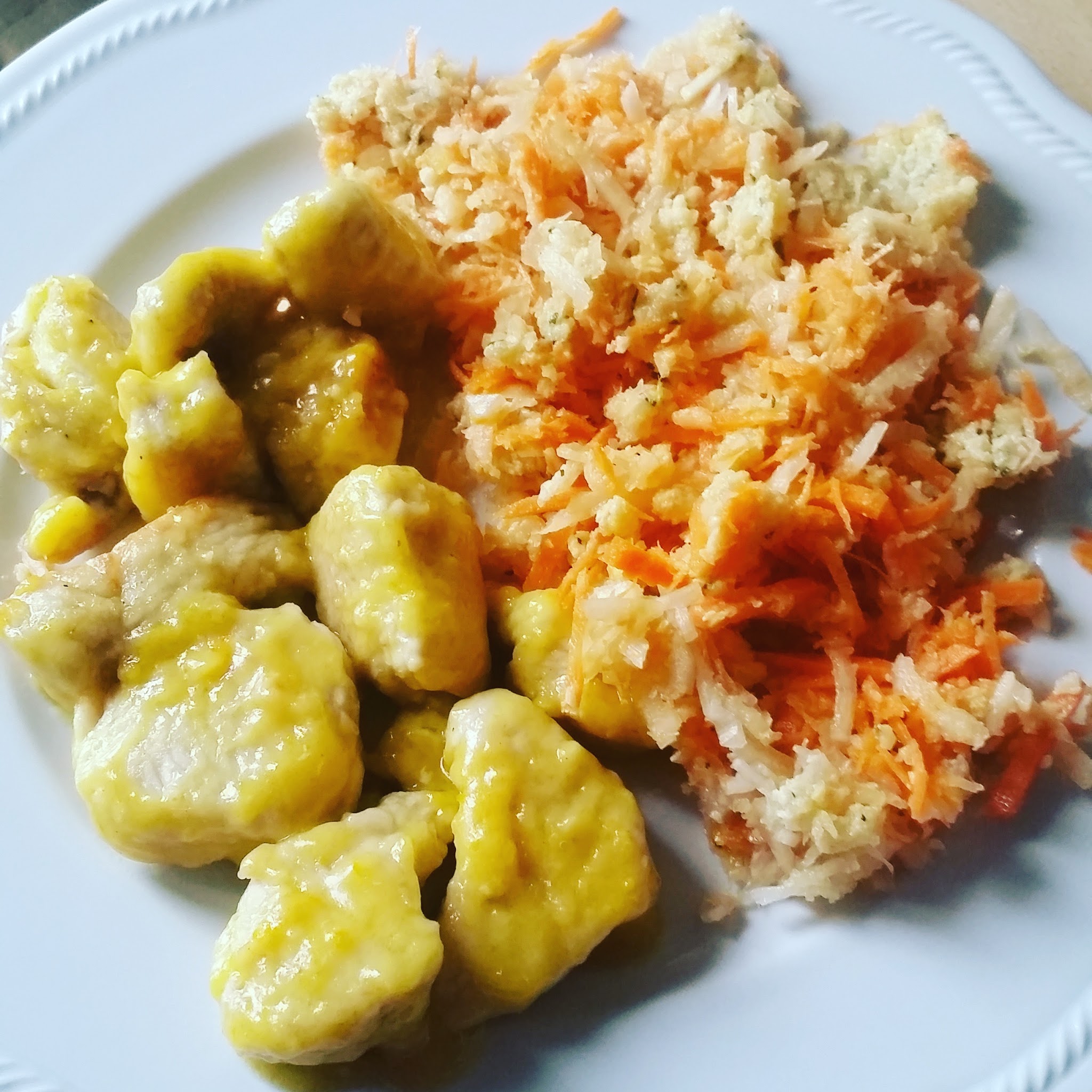 Toglia eventuali nervetti a 400g di bocconcini di tacchino e rosola in olio e zenzero (fresco grattugiato o in polvere); una volta che ha cambiato colore aggiungi succo e scorza di 1 arancia, pepe e lascia cuocere altri 10-15'.